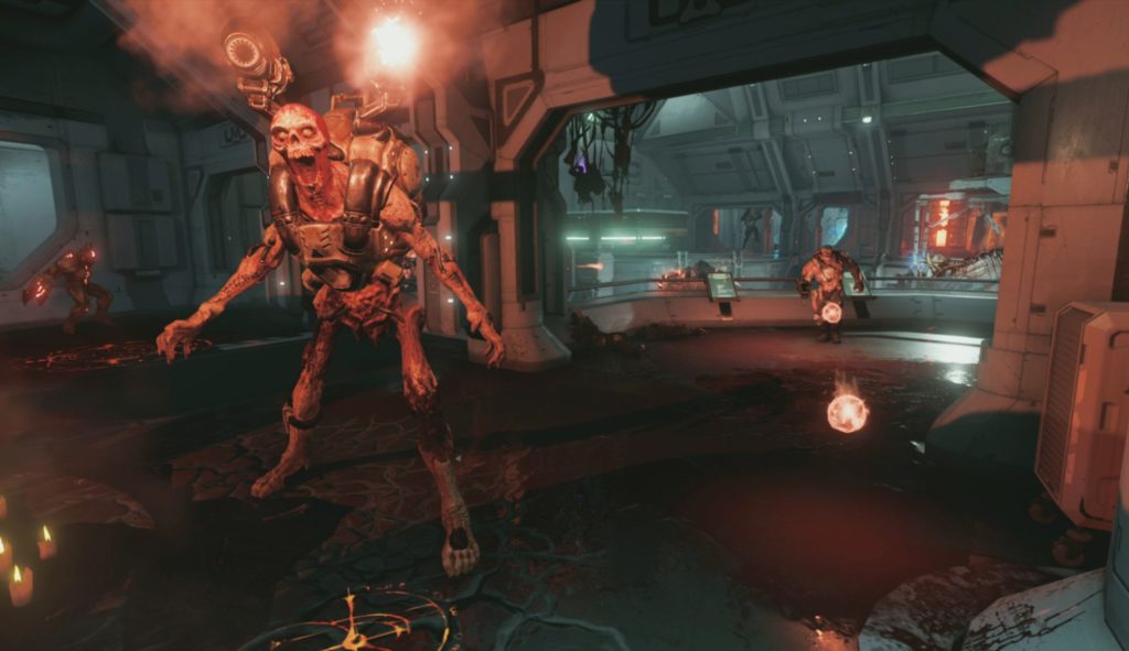 Die ID Tech hat aber auch einen Nachteil, zumindest auf der PS4 Pro: Ladezeiten. Das Nachladen dauert so lang. Manchmal merkt man sogar, wie innerhalb eines Levels langsam Texturen nachgeladen werden. Das ist etwas schade, weil die Texturen dann auf einmal ganz abrupt von lo-res auf hi-res umschalten, wenn das Laden vorbei ist.