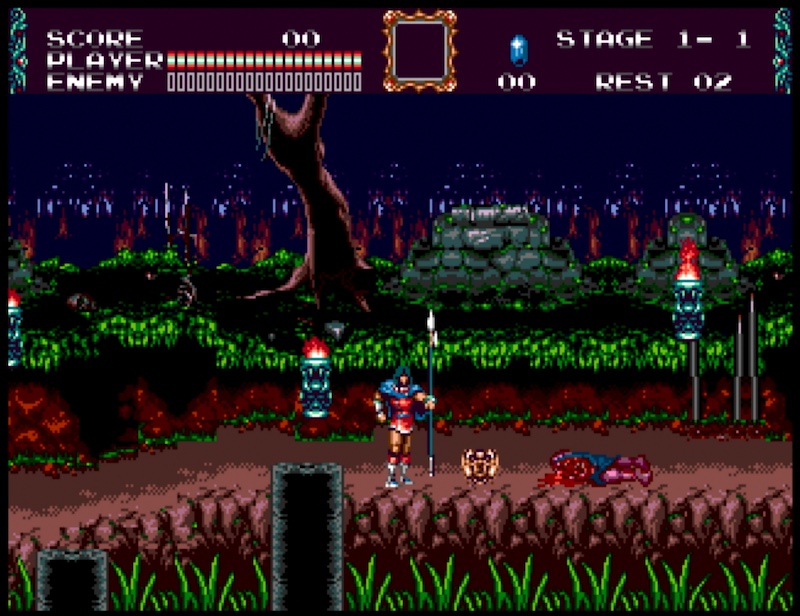 Ich habe Vampire Killer (Mega Drive auf MiSTer) durchgespielt. Vampire Killer ist die japanische Version von Castlevania Bloodlines. Ich habe mit Eric auf Normal gespielt. Das Spiel ist meiner Meinung nach um einiges spassiger als Castlevania IV auf dem SNES.