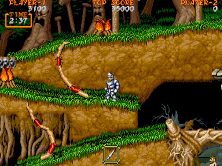 Die US Automatenversion von Ghouls’n’Ghosts hat viel mehr Rücksetzpunkte als die World Version. Zum Beispiel erscheint man nach Lebensverlust oft direkt vor dem Endgegner wieder. Bei der World Version muss man dagegen immer den halben Level nochmal spielen.